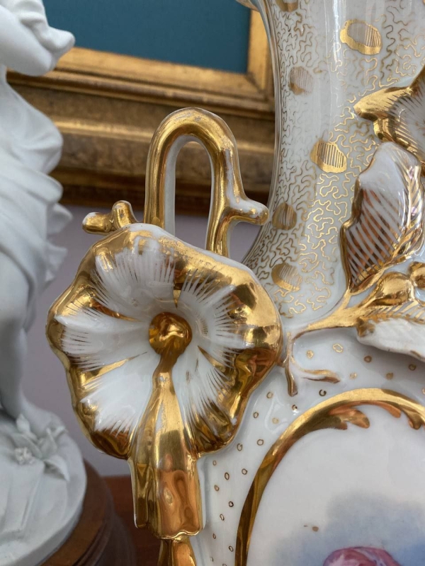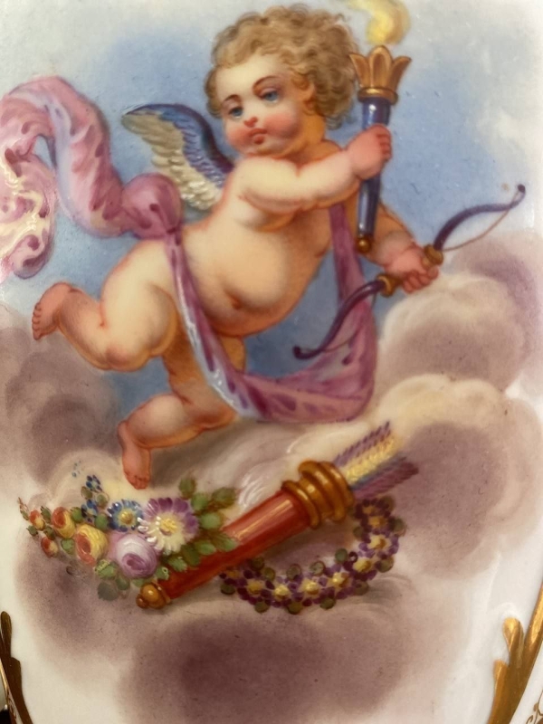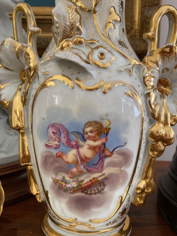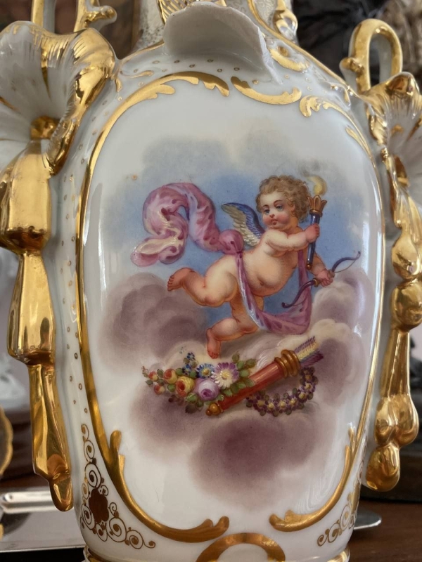 19th Century French Cornet Vase with Hand-Painted Putti – Rare Parisian Porcelain Wedding Vase