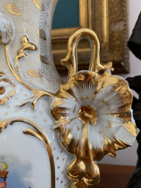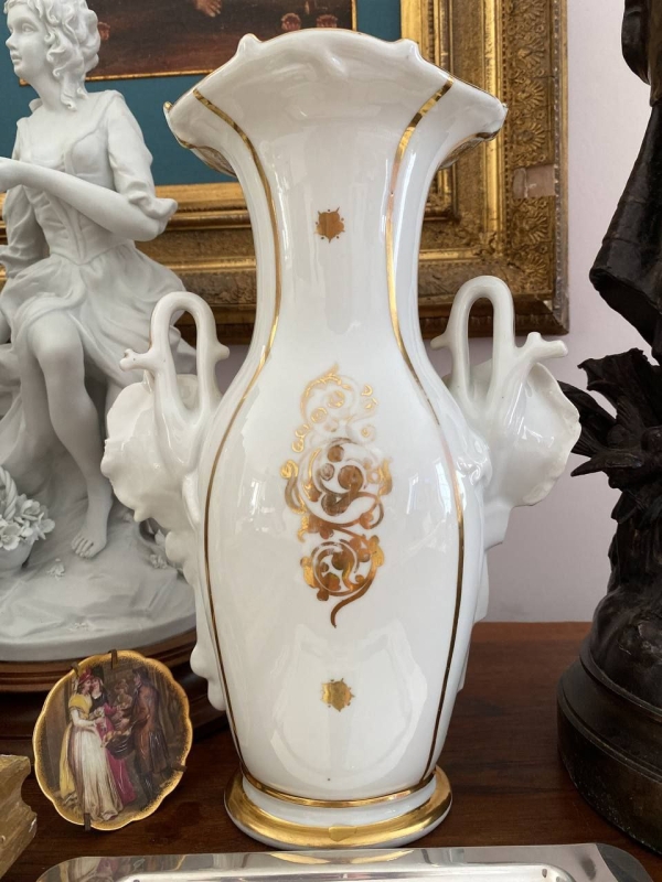 Own a rare 19th-century French Cornet vase with hand-painted Putti and gold accents. This Parisian porcelain wedding vase is a collector’s dream. Global shipping available.